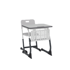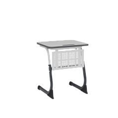 Каркас парты состоит из пояса, двух стоек, перемычки и двух опор. Стойки монтируются с поясом при помощи винтов. Опоры вставляются в нижнюю стойку и стягиваются между собой. Столешница крепится посредством металлических уголков. Под ней располагается корзина для книг. В стойке есть крючки для рюкзаков и сумок.