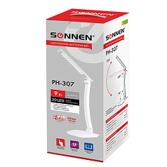 Светильник настольный SONNEN PH-307, на подставке, светодиодный, 9 Вт, пластик, белый, 236683