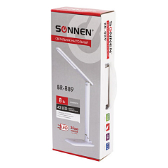 Светильник настольный SONNEN BR-889, на подставке, светодиодный, 8 Вт, белый, 236662