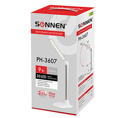 Светильник настольный SONNEN PH-3607, на подставке, светодиодный, 9 Вт, металлический корпус, серый, 236686