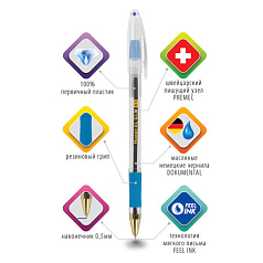 Ручка шариковая масляная с грипом BRAUBERG "Model-XL GLD", СИНЯЯ, узел 0,5 мм, линия письма 0,25 мм, 143245