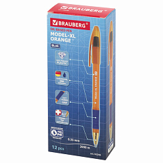 Ручка шариковая масляная с грипом BRAUBERG Model-XL ORANGE, СИНЯЯ, узел 0,7 мм, линия 0,35 мм, 143246