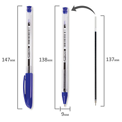 Ручка шариковая масляная BRAUBERG "Ice", СИНЯЯ, корпус прозрачный, узел 0,6 мм, линия письма 0,3 мм, 142686
