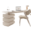 Встроенный стеллаж добавляет дополнительную полезную площадь, предполагая аккуратное размещение книг, документов и аксессуаров. Элегантный дизайн подчеркивает современность интерьера, превращая рабочее место в функциональный и стильный элемент обстановки.
