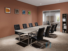 Надежный металлический каркас выполнен из трубы квадратного сечения (40х40 мм) и спроектирован таким образом, что создается эффект "парящей столешницы". Несколько столов составляются в презентабельную, не громоздкую, "воздушную" композицию.