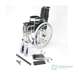 Конструкция модели предусматривает складывающуюся раму, а подножки и подлокотники можно снять. Колеса оборудованы тормозами. Для повышения устойчивости снизу рамы расположены защитные трубы, предотвращающие случайное опрокидывание.