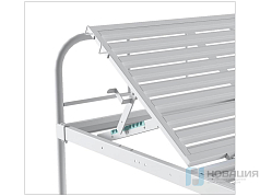 Конструкция кровати включает четырехсекционное металлическое ложе с возможностью плавной регулировки угла наклона спины и таза посредством винтового механизма, а также изменения положения ног с использованием специального устройства.
