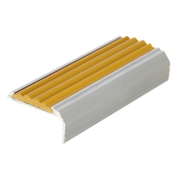 Противоскользящий угол с продольными бороздками используется при монтаже специальных покрытий для людей с ОВЗ. Желтая вставка заметна издалека.