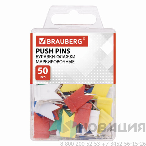Булавки-флажки маркировочные BRAUBERG, цветные, 50 шт., пластиковая коробка, европодвес, 221537