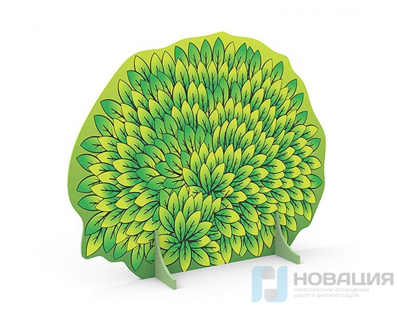Декорация для утренников и театрализованных представлений размещается в ДОУ. Резная панель с цветным изображением куста стоит на двух подставках.