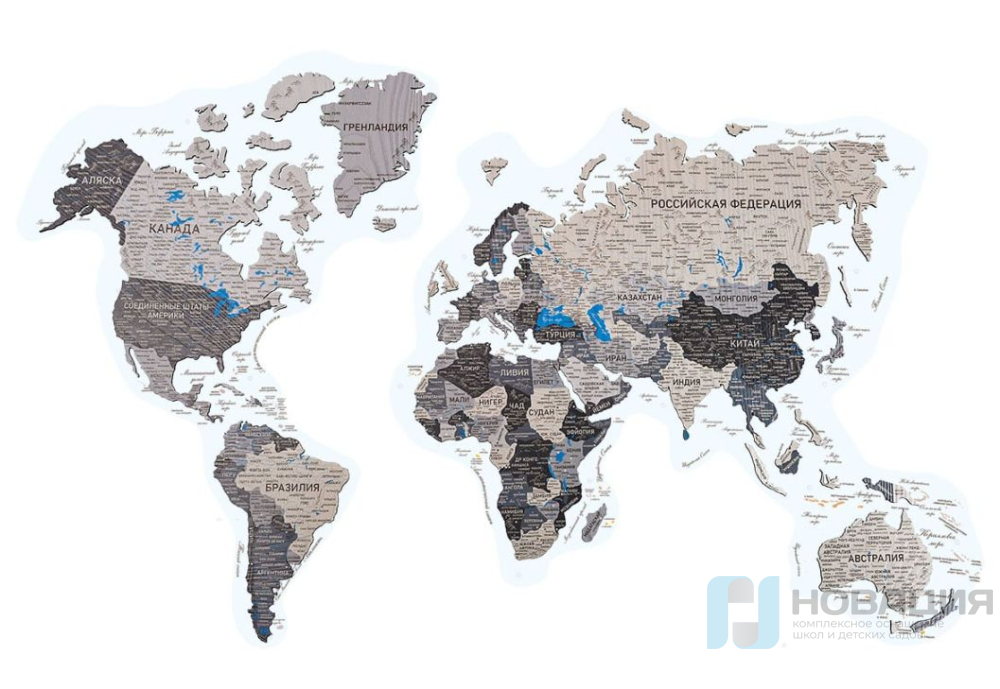 Карта мира на прозрачной акриловой панели станет стильным акцентом любого интерьера. Натуральная древесная фактура в оттенке борнео-грей гармонирует с нейтральной подсветкой, создавая плавное и эффектное свечение. Реалистичность и глубина детализации ландшафта, подчеркнутая чёткими контурами и яркими цветовыми акцентами.