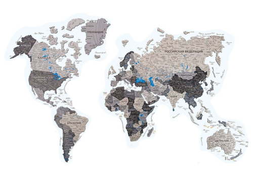 Деревянная карта мира на прозрачном оргстекле, с подсветкой (борнео грей)