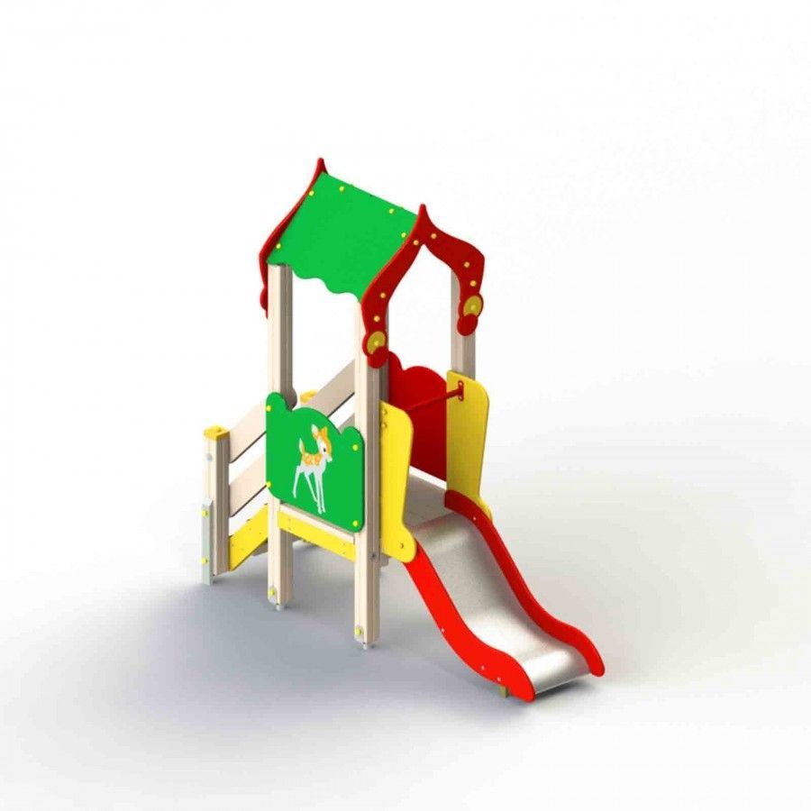 - горка: скат из стали (1.5 мм), фанерные бортики (h 100 мм) и защитная секция, перекладина (d 33 мм),