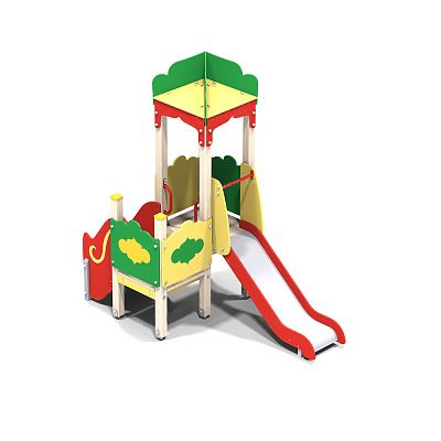 В составе комплекса: крытая башня, полубашня, поручни, горка, лестница, крыша, ограждения, перекладина.