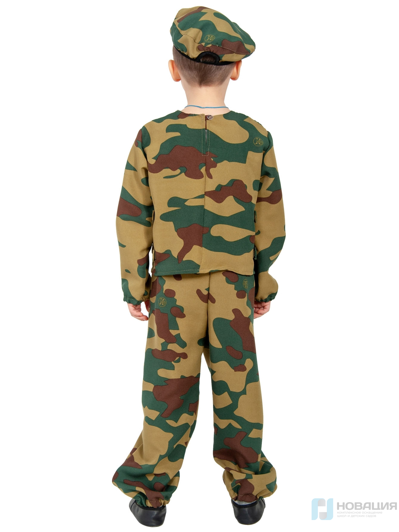 Костюм десантника для мальчика состоит из куртки, брюк и берета в камуфляжной расцветке. Подходит для постановки сценок и спектаклей, посвященных 9 мая и 23 февраля.