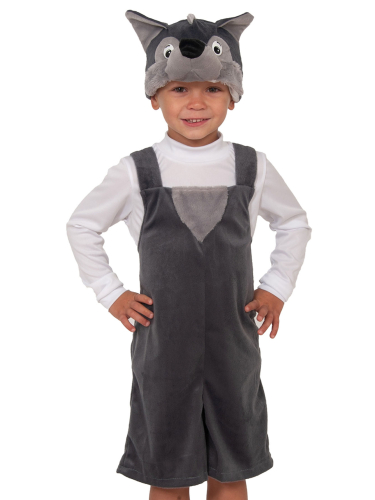 Детский костюм предназначен для мальчиков. Состоит из шапочки в виде головы волка и полукомбинезона. Бретели полукомбинезона регулируются. Подходит для проведения утренников и праздников, постановки сценок и сказок.