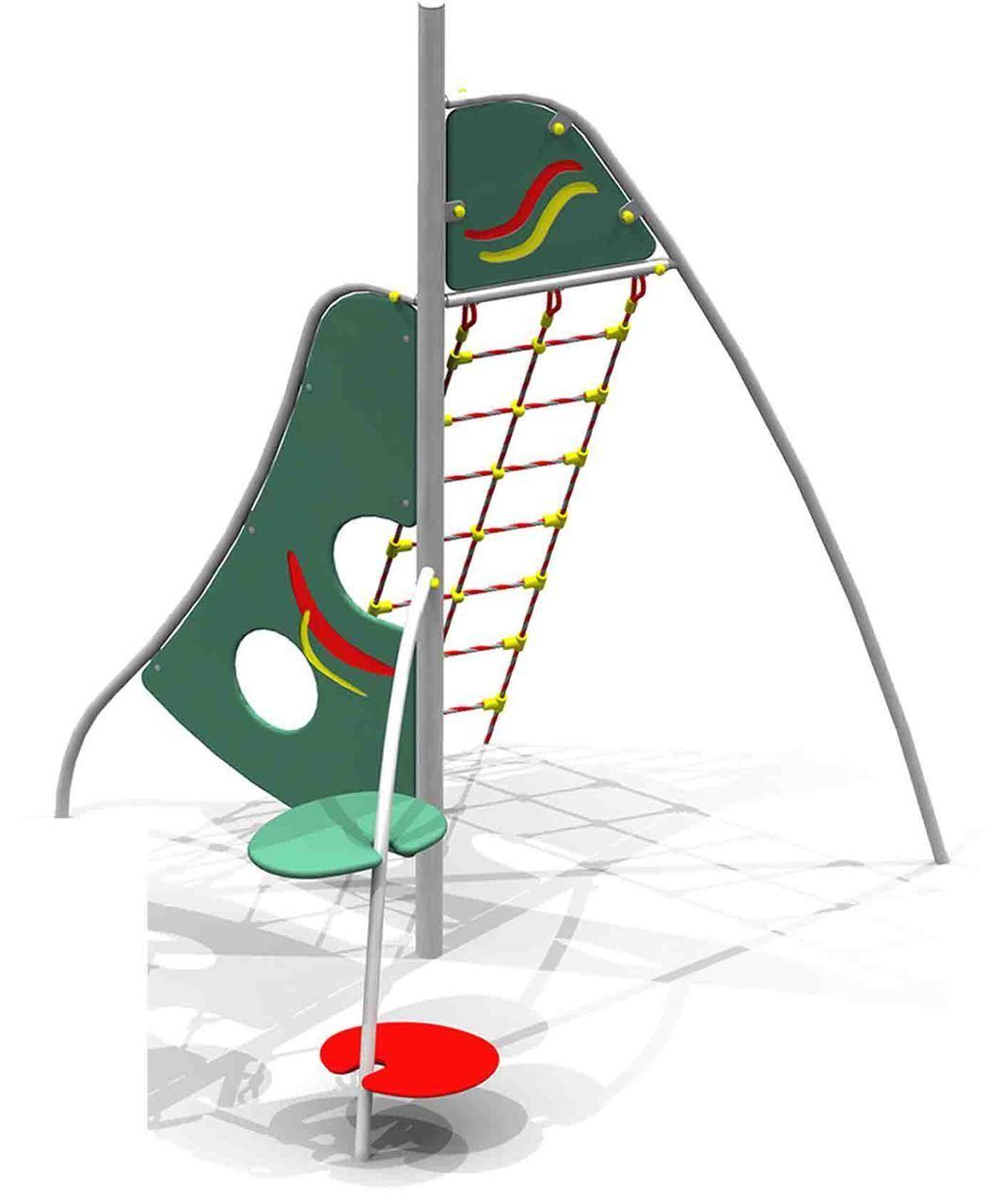 В составе комплекса: столб, альпинистская стенка с зацепами, полипропиленовая сетка для лазания, дуга со ступенями.