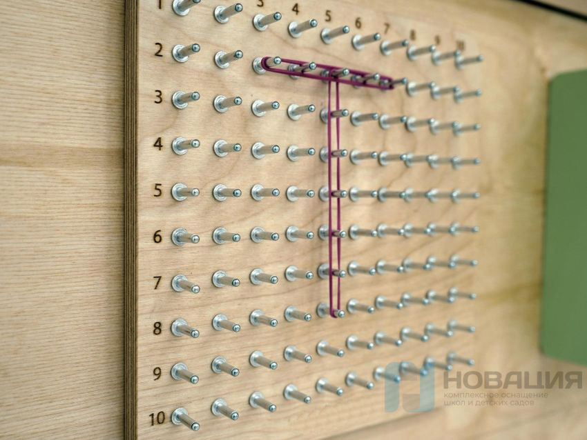 При работе с модулем «Геоборд» дети с помощью резинок выкладывают буквы и символы, которые педагог рисует на магнитно-маркерной доске.