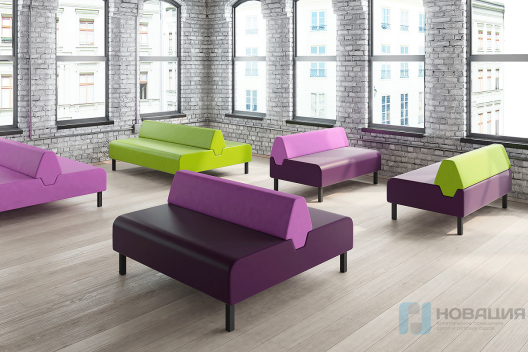 Представляет собой конструкцию с двухсторонними посадочными местами, которые разграничены спинкой. Сиденья и спинка покрыты мягкой обивкой. Отсутствуют острые углы.