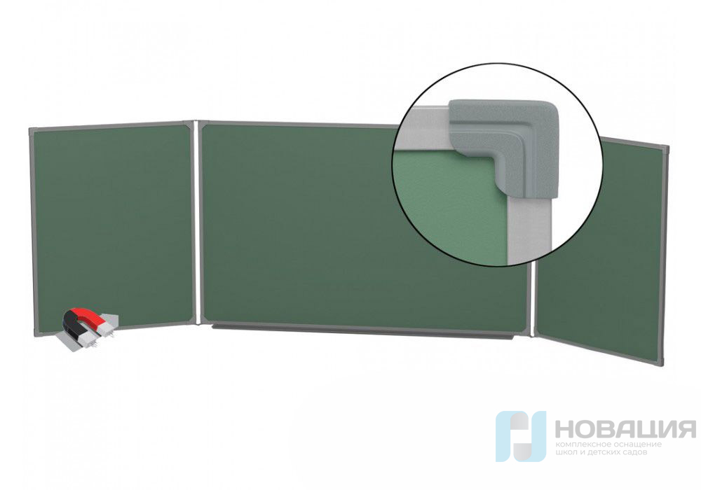 Благодаря специальному покрытию рабочие области не бликуют. Классная доска удерживает магниты.