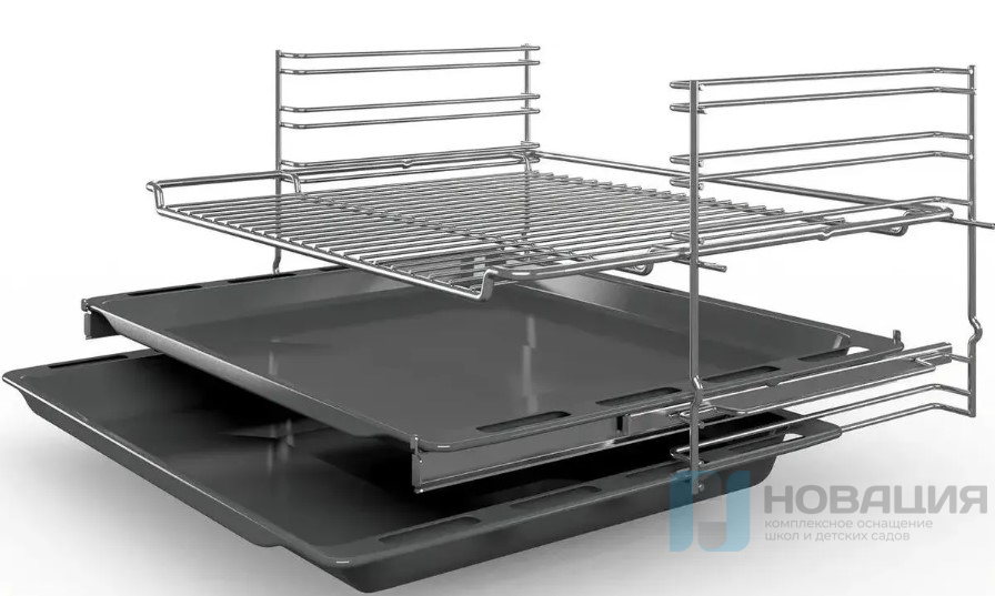 Духовой шкаф работает по конвенционной технологии. Имеет 7 режимов работы и 4 уровня для расположения противня и сетки. Функция 3D-горячего воздуха обеспечивает равномерную прожарку блюда на всех уровнях.