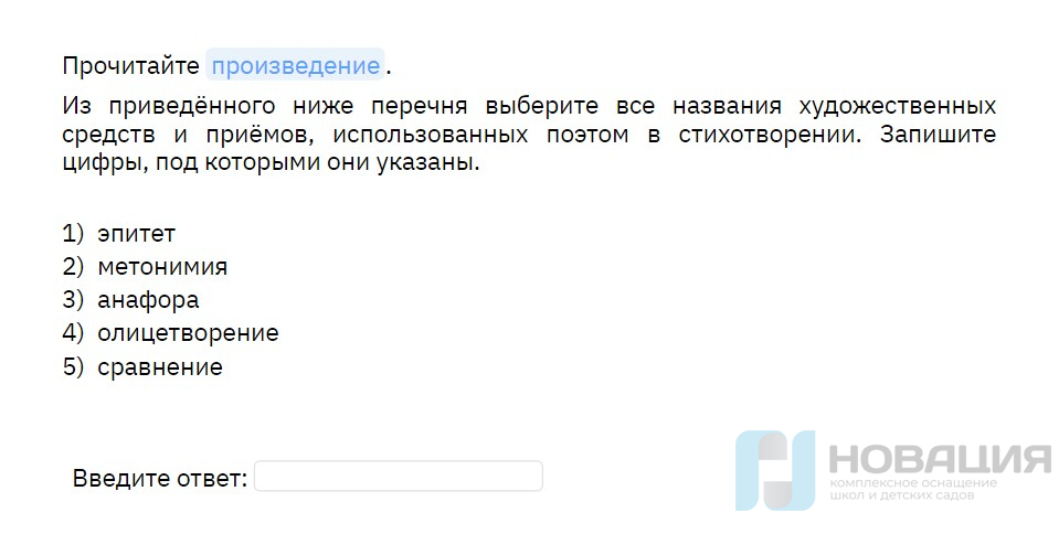 ЭОР предназначен для подготовки к сдачи ГИА по литературе и позволяет повторить материалы школьной программы. Содержит интерактивные задачи различных типов. Подходит для интерактивной доски.