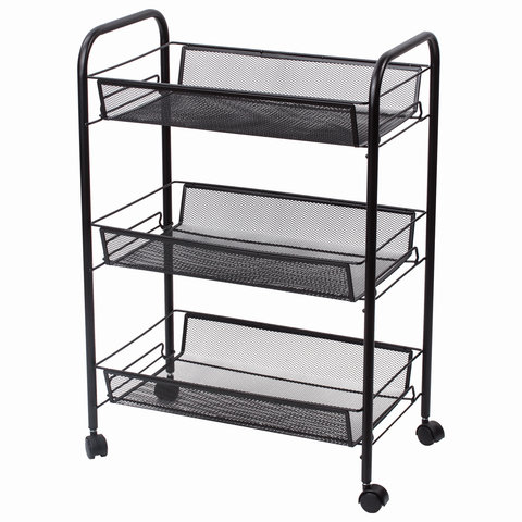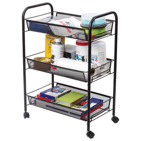 Этажерка (тележка) BRABIX офисно-бытовая 3 яруса, на колесах, металл, черная, 43,5х26х62,5 см, 603751