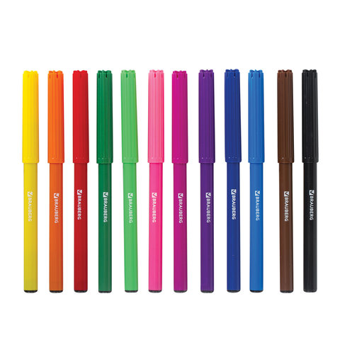 Фломастеры BRAUBERG "АКАДЕМИЯ", 12 цветов, вентилируемый колпачок, ПВХ упаковка, 151411