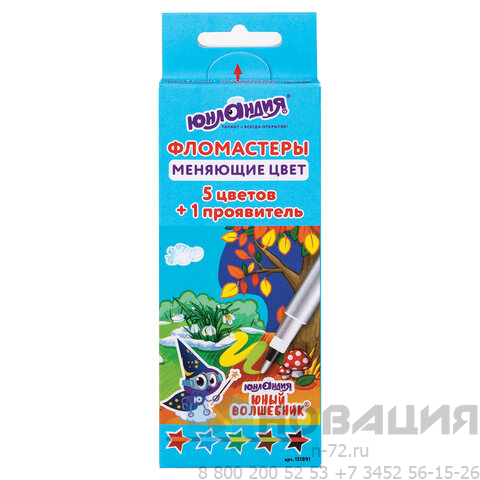 Фломастеры, меняющие цвет ЮНЛАНДИЯ 5 цветов + 1 проявитель, "ЮНЫЙ ВОЛШЕБНИК", вентилируемый колпачок, 151891