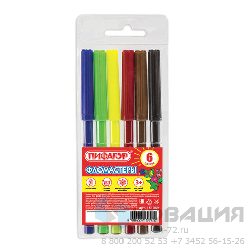 Фломастеры ПИФАГОР, 6 цветов, вентилируемый колпачок, 151089