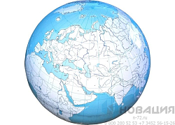 На цветной трехмерной модели Земли обозначено местоположение и границы государств, их названия и столицы, а также подписаны моря и океаны. Глобус устанавливается на подставку, его можно вращать вокруг оси.