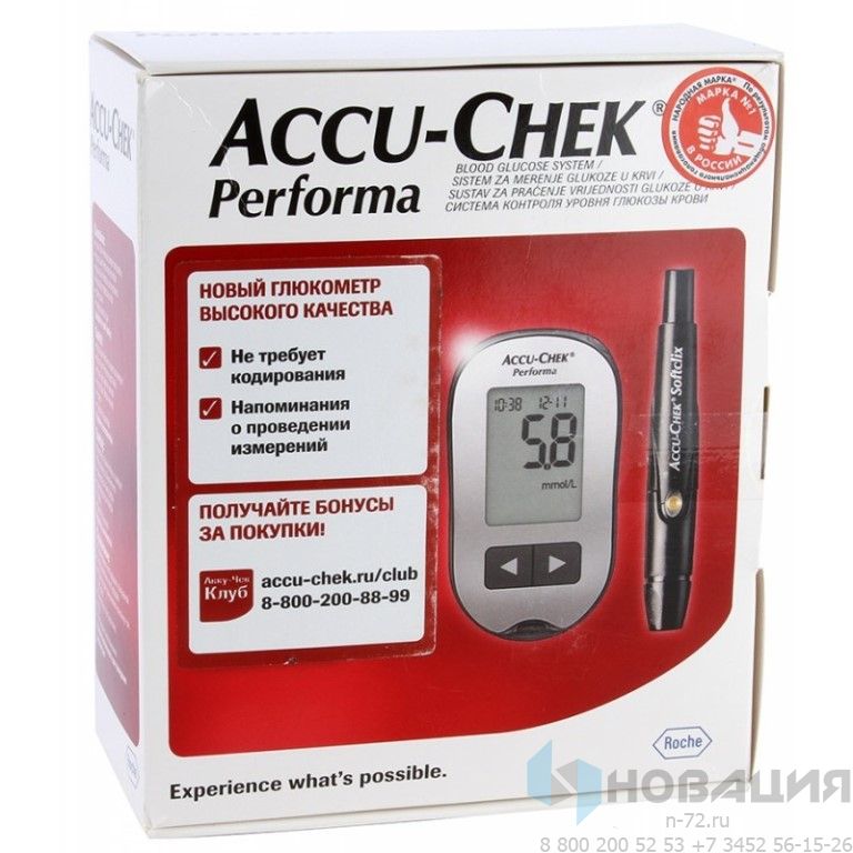 Для измерения необходимо вставить тест-полоску и приложить тестовое поле к предварительно полученной капле крови. Оснащен жидкокристаллическим дисплеем с подсветкой. Прибор автоматически включается и выключается. В памяти устройства хранится до 500 измерений с датой и временем анализа.
