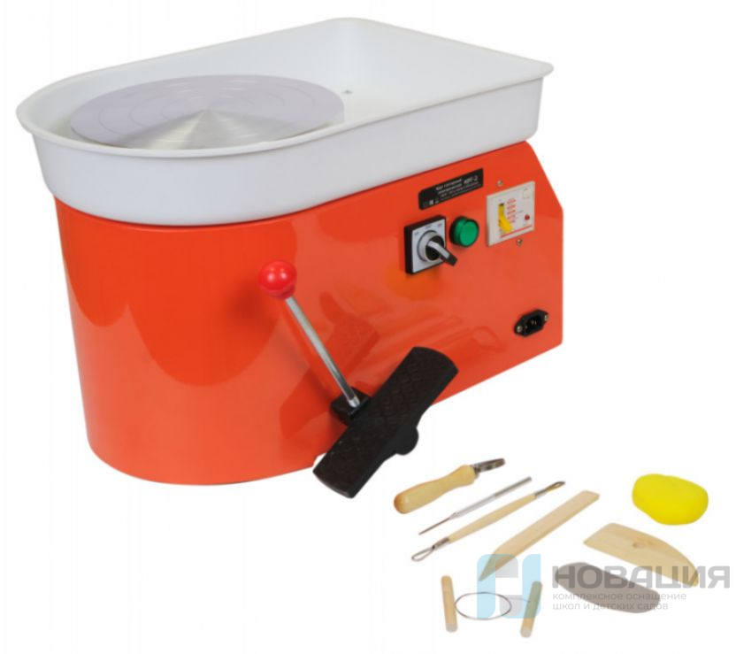 Гончарный круг предназначен для начинающих художников-гончаров. Инструмент оснащен мотором мощностью 350 Вт. Педаль имеет удобную систему фиксации положения, благодаря чему можно устанавливать нужную скорость вращения и переключаться между направлениями вращения.