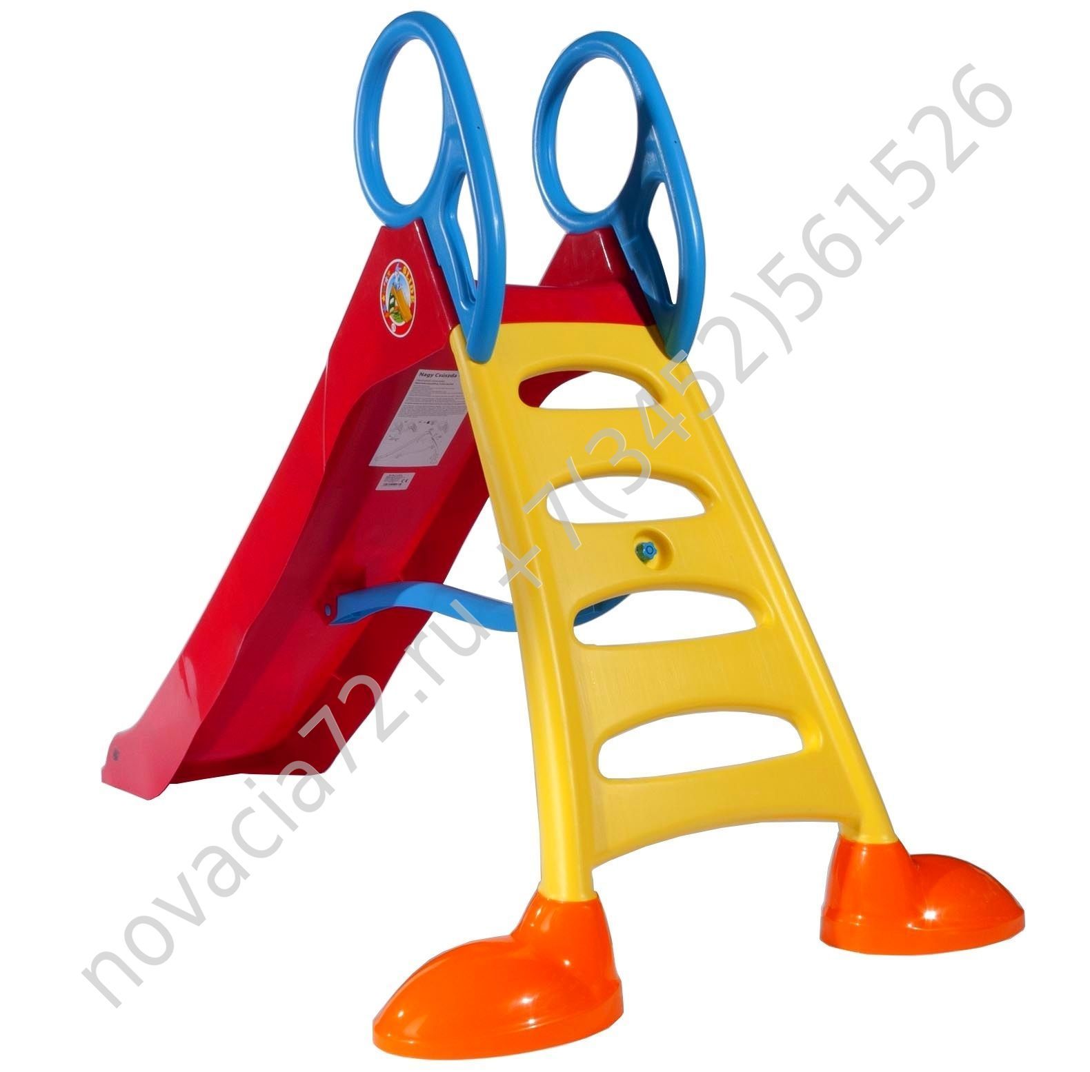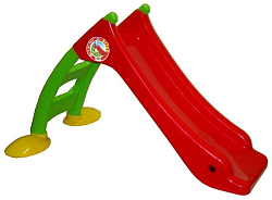 Аккуратная пластиковая горка с функцией подключения воды позволяет устроить на уличном участке или в помещении мини-аквапарк. Для большей устойчивости конструкции между ступенями и скатом предусмотрено дополнительное ребро жесткости.