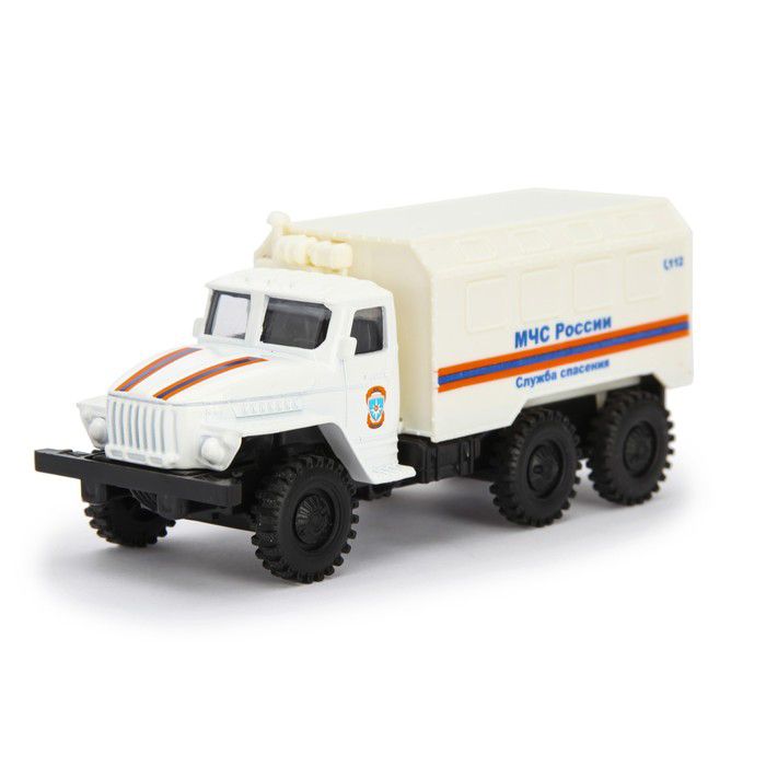 Модель грузовика выполнена в масштабе 1:48. Корпус стилизован под оформление транспорта МЧС. Машинка задействуется в сюжетах игр, служит иллюстрацией для занятий на тему безопасности.