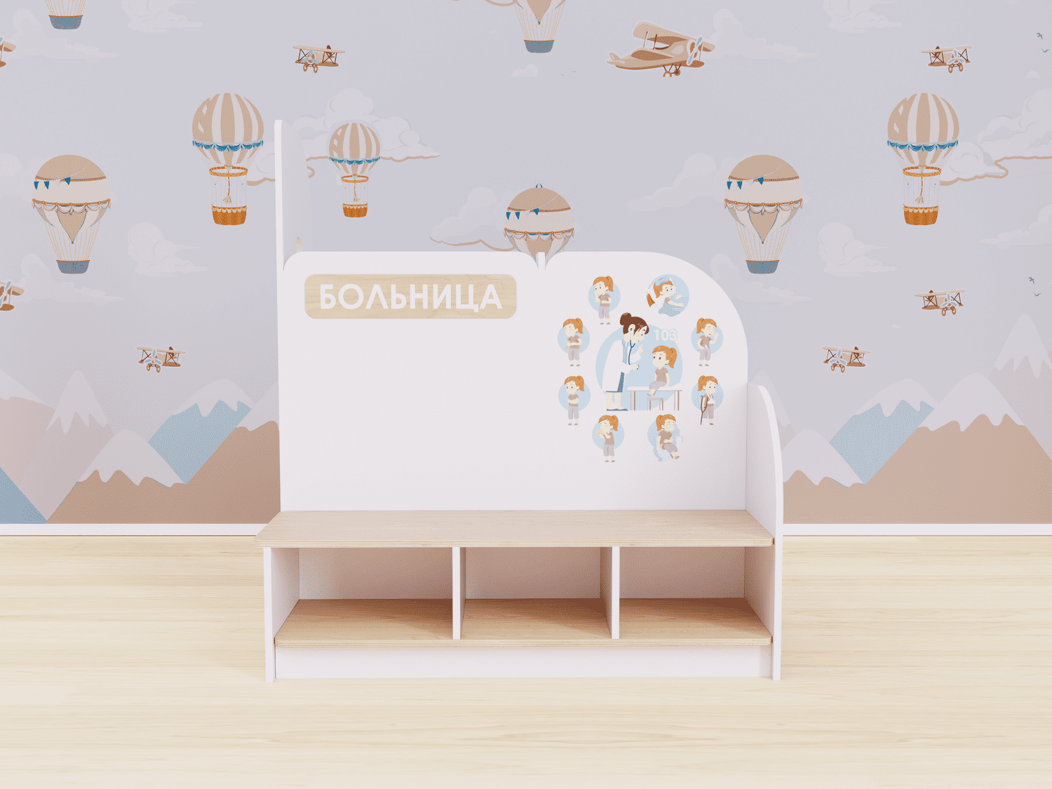 Игровая зона «Больница» создана для сюжетно-ролевых игр в детских садах и дошкольных учреждениях. Она позволяет детям погрузиться в мир медицины, где они могут играть роли врачей, медсестёр и пациентов.