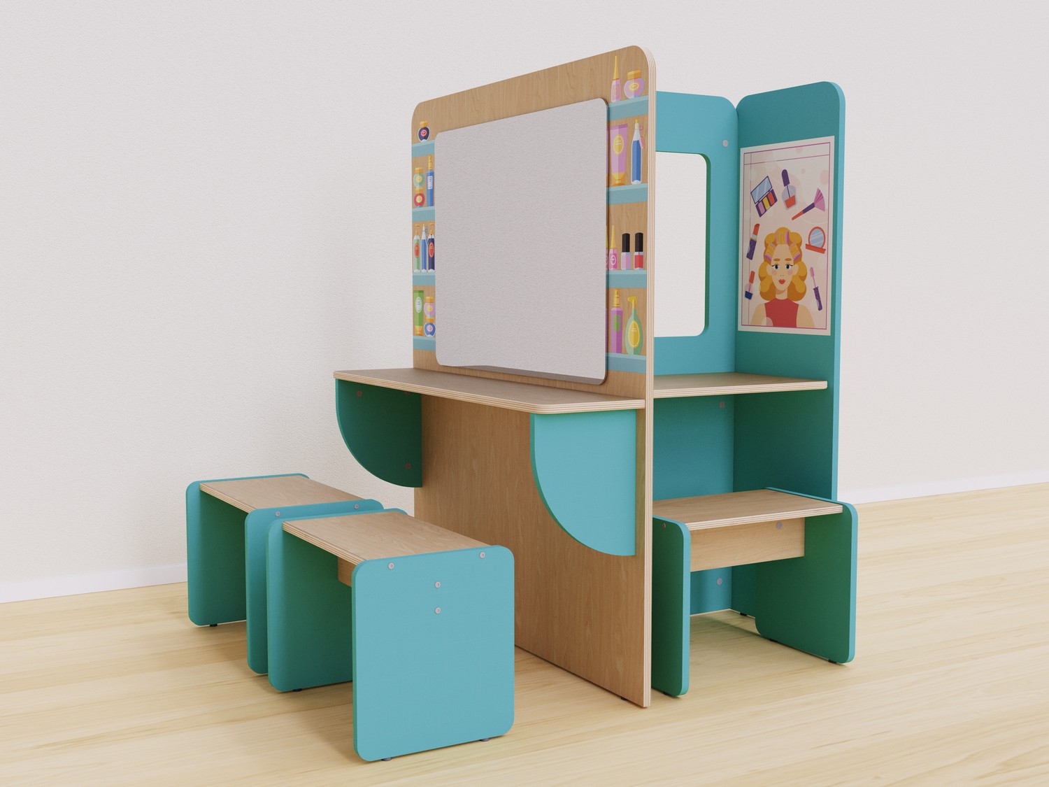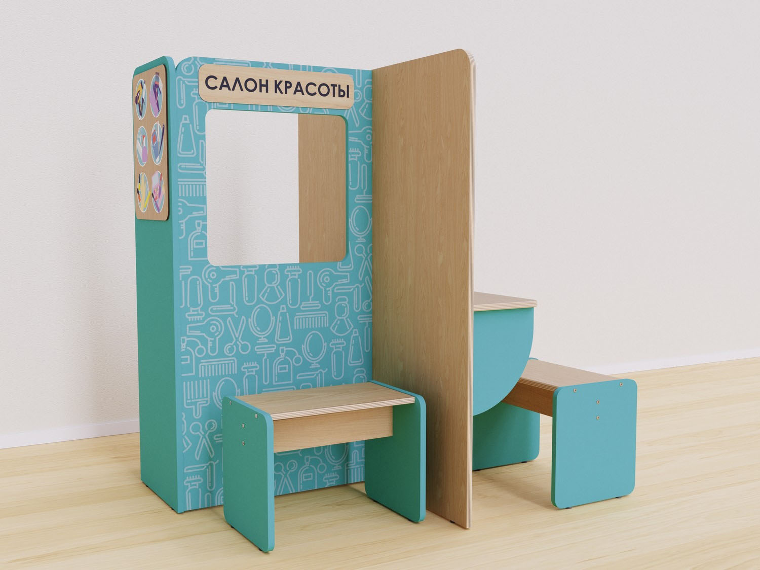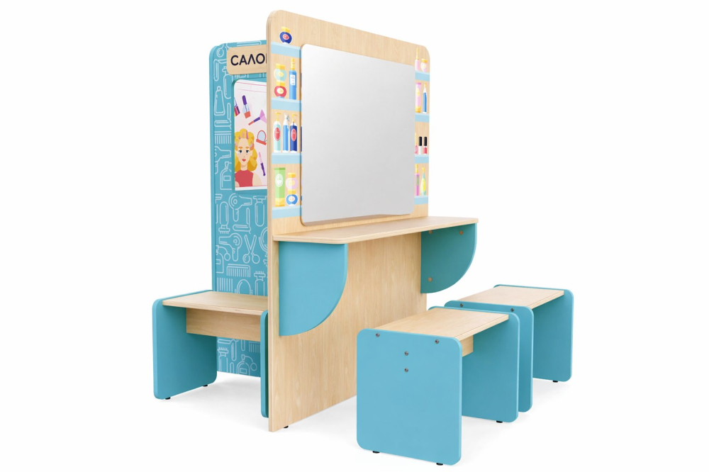 Игровая зона «Салон красоты» предназначена для сюжетно-ролевых игр в детских садах и дошкольных учреждениях. Она позволяет детям попробовать себя в ролях стилистов, визажистов и клиентов.