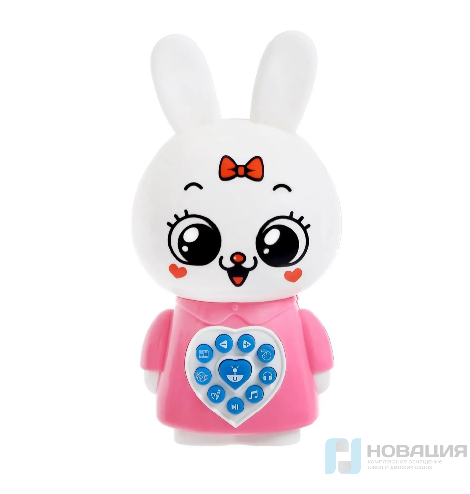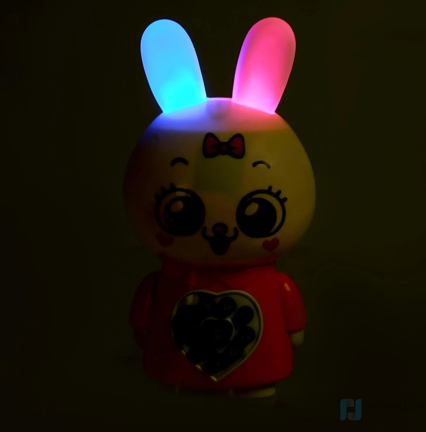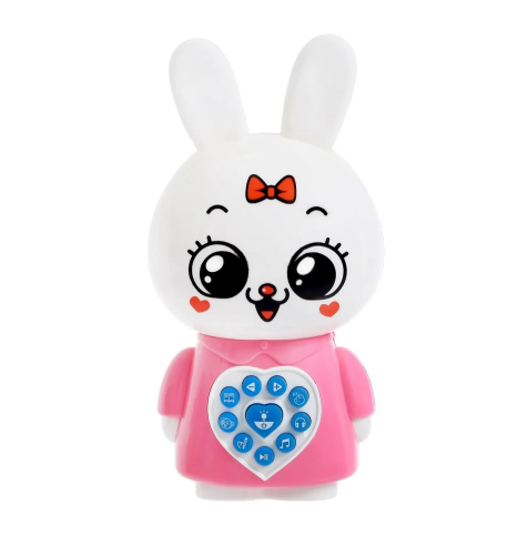 Игрушка в виде зайчонка читает сказки, поет песенки, воспроизводит фразы, названия и звуки животных. Ребенок научится считать, запоминать формы предметов, цвета. Ушки зайчика подсвечиваются, его можно использовать как ночник.
