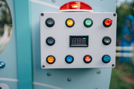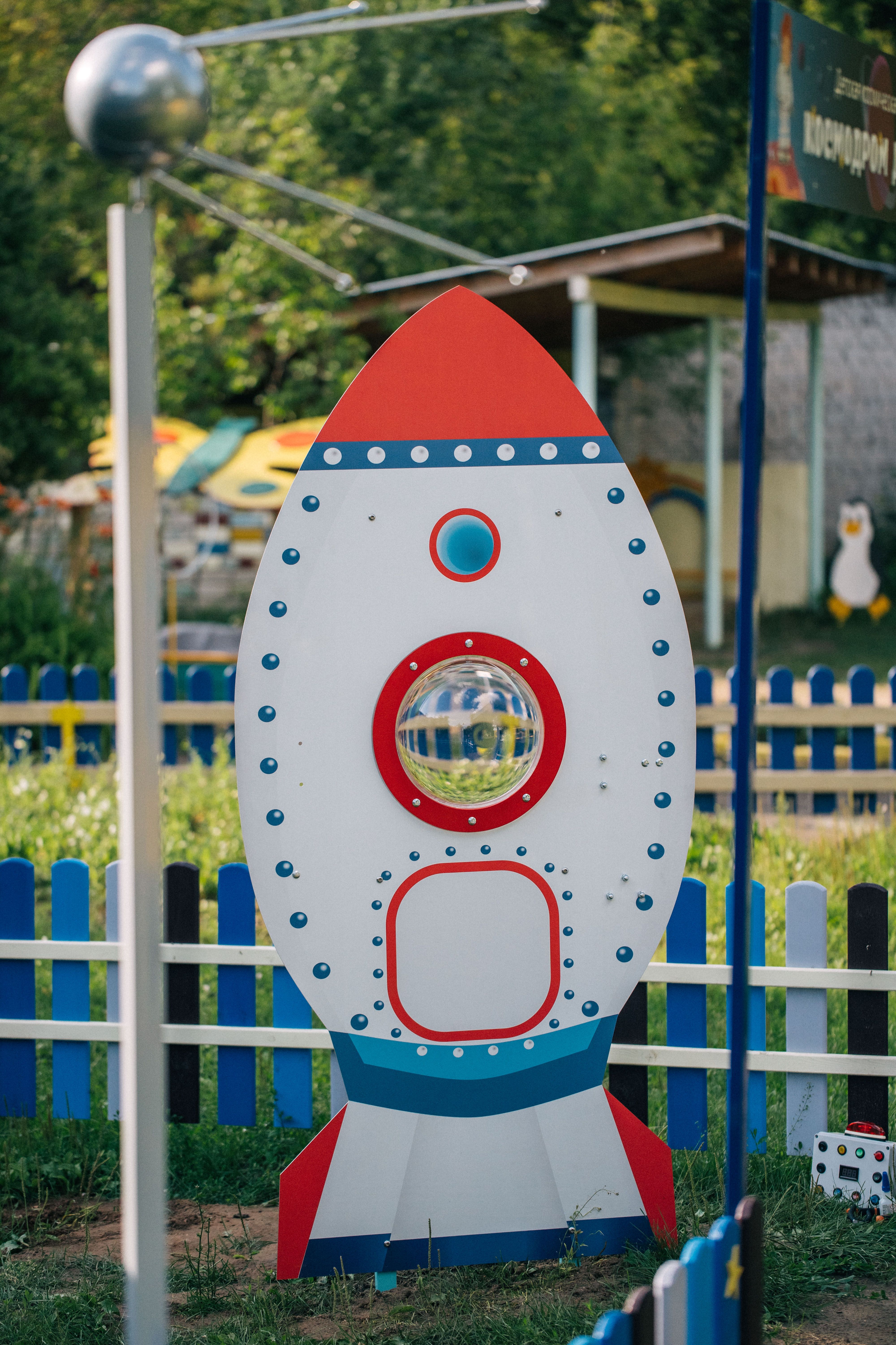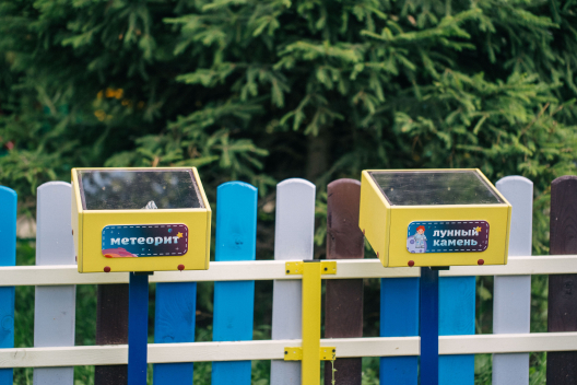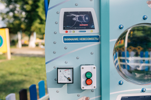 Уличное оборудование соответствует требованиям ФГОС ДО и программы "Доступная среда". Модули оснащены кнопками и рычагами, похожи на объекты настоящего космодрома. Игры с интерактивными установками влияют на моторику рук, речевые навыки, память.