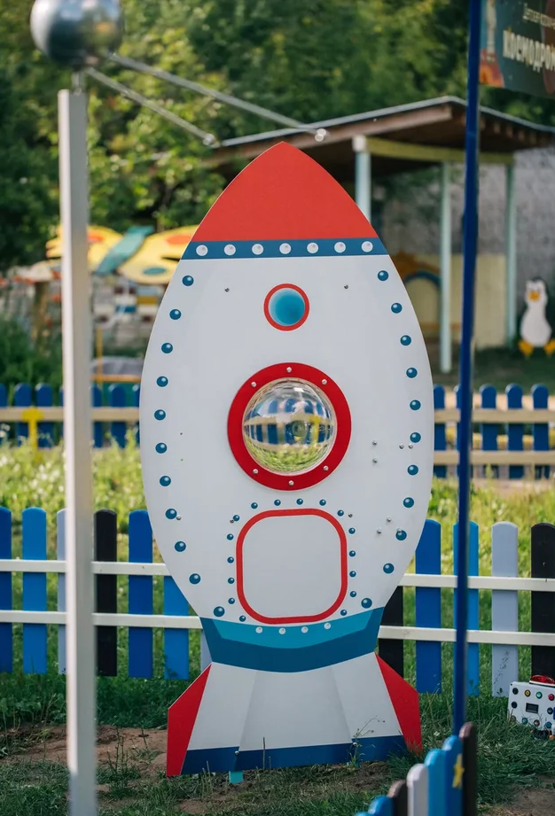 Уличное оборудование соответствует требованиям ФГОС ДО и программы "Доступная среда". Модули оснащены кнопками и рычагами, похожи на объекты настоящего космодрома. Игры с интерактивными установками влияют на моторику рук, речевые навыки, память.
