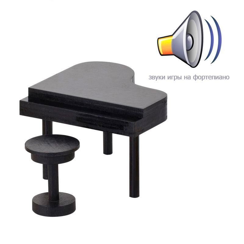 Игрушечный рояль для кукол оснащён звуковым модулем, который активируется нажатием на соответствующую кнопку. Модуль позволяет имитировать игру на рояле.