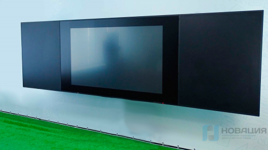 Панель имеет матовую меловую поверхность. Писать мелом можно на всей поверхности доски, в том числе - на экране интерактивной панели. В боковых частях расположены 2 магнитно-меловые секции, которые можно сдвинуть к центру.