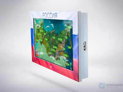 - Интерактивная настенная панель, оформленная в стилистике российского триколора. (43 дюйма, Full HD, мультитач 10 касаний);