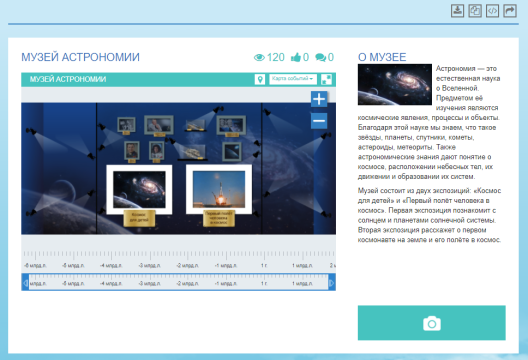 "Виртуальный школьный музей" – инструмент для создания презентаций со специальным хронологическим подходом. Факты и комментарии располагаются в заданной последовательности, выстраиваются в цепочку.