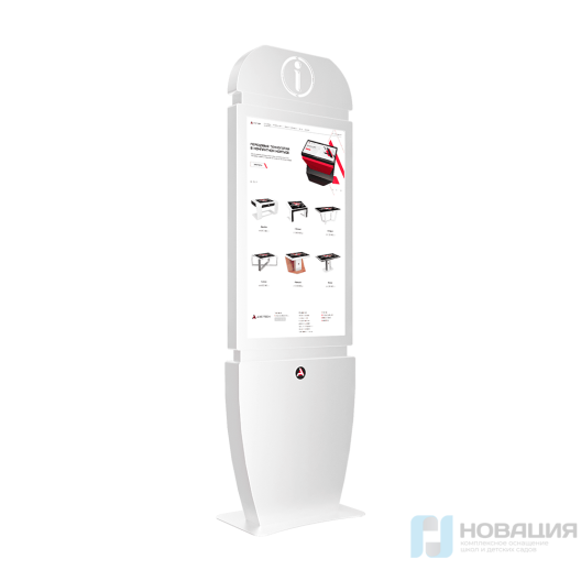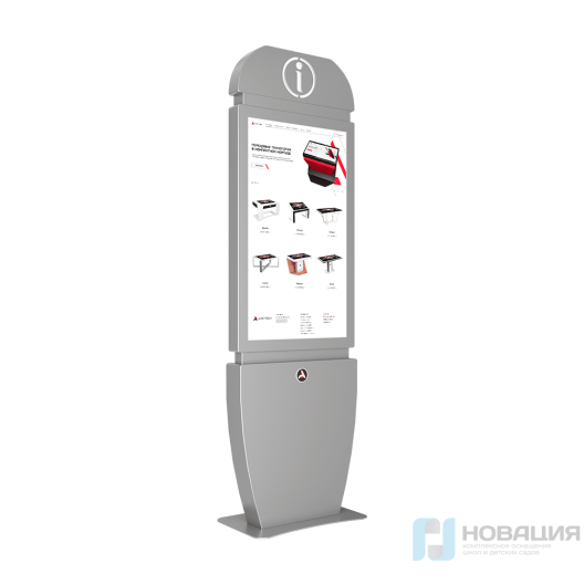 Сенсорный киоск Info оснащен утонченным корпусом, ярким дизайном и мультитач-системой. Размещенный на корпусе знак информации имеет яркую подсветку, которая позволяет заметить его издалека.