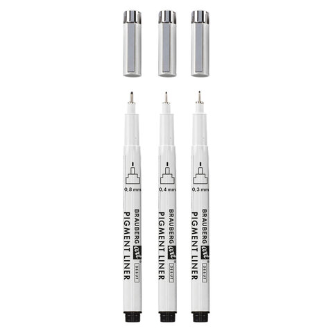 Капиллярные ручки линеры для рисования 3шт черные 0,3/0,4/0,8мм, BRAUBERG ART DEBUT,, 143939