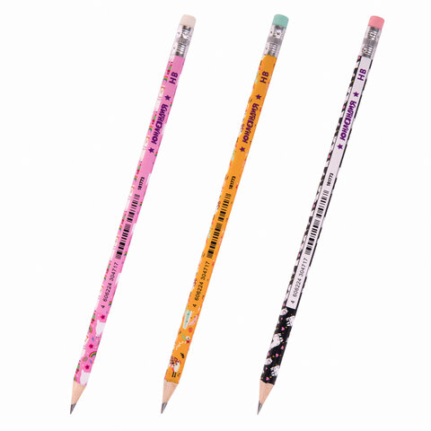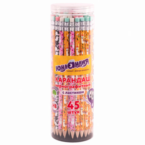 Каждый карандаш имеет индивидуальный штрих-код. Легко затачивается, максимально устойчив к повреждениям. Изготовлен из дерева высокого качества. Имеет круглый корпус с яркой печатью ассорти, оснащен ластиком. Карандаш длиной 190 мм обладает средней степенью твердости – HB. Поставляется заточенным в пластиковой тубе по 45 штук.