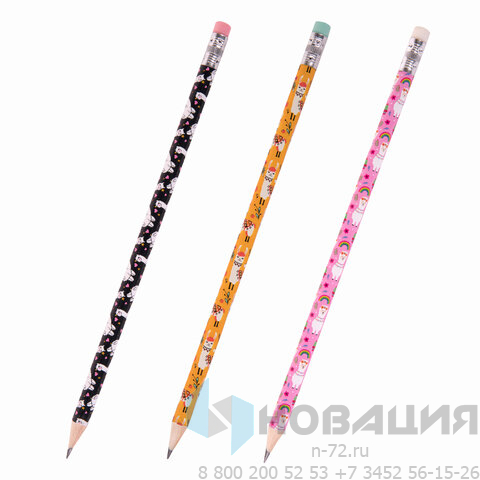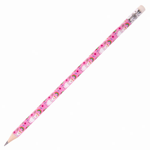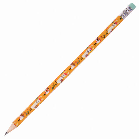 Карандаш чернографитный ЮНЛАНДИЯ "ЛАМЫ", 1 шт., HB, с ластиком, корпус ассорти, 181773