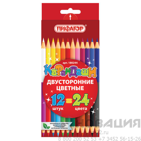 Карандаши двусторонние ПИФАГОР, 12 штук, 24 цвета, заточенные, картонная упаковка, 180244