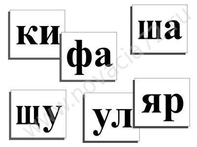 Пособие представляет собой набор карточек, на которых напечатаны двухбуквенные открытые и закрытые слоги, отобранные по частотному принципу употребления в «Азбуке».